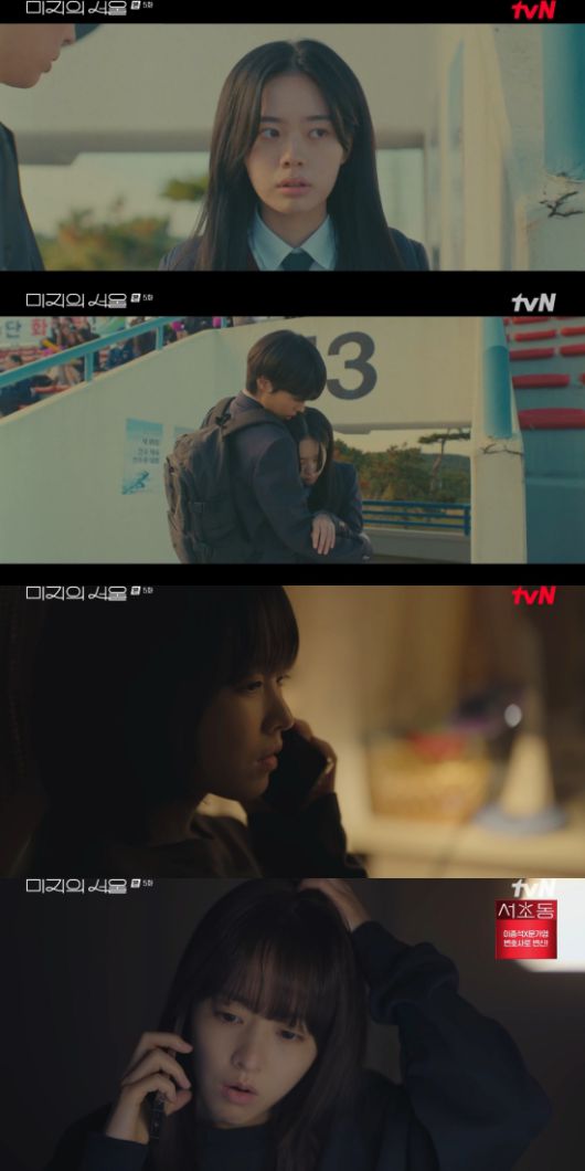 7일 방송된 tvN 토일드라마 '미지의 서울' 5회에서는 유미지(박보영 분)가 학창 시절 이호수(박진영)와 유미래(박보영)가 사귀었다는 소문이 거짓말이라는 것을 알게 된 모습이 그려졌다.