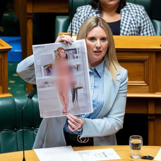 지난달 30일(현지시각) 뉴질랜드헤럴드 등 현지 매체에 따르면 뉴질랜드 액트당 소속 로라 맥클루어 의원은 지난달 14일 의회에서 A3 용지에 인쇄된 자신의 나체 사진을 펼쳐 보였다.