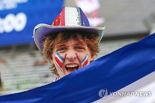 코스카리카 국기 색깔로 얼굴을 치장한 축구 팬 |