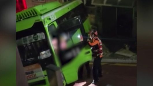 버스기사는 소방관들과 실랑이 끝에 차에서 내립니다.