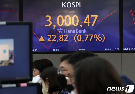 지난 2022년 3000포인트를 찍은 코스피. (자료사진) 2022.1.3/뉴스1 ⓒ News1 박지혜 기자 |