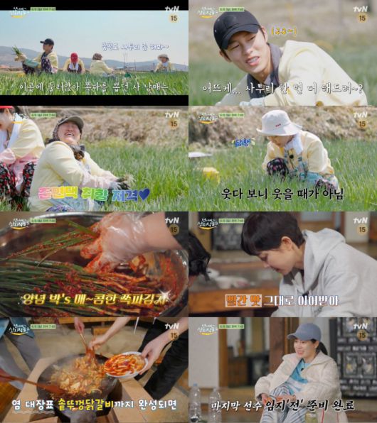 직접 수확한 식재료로 선보이는 요리 한 상도 빼놓을 수 없는 하이라이트다. 염정아의 특별한 킥이 들어가는 푸짐한 솥뚜껑 닭갈비와 함께 '임지전'으로 거듭난 임지연의 쪽파전&김치전 그리고 '양념 박' 박준면의 파김치까지, 그야말로 민속주점을 떠오르게 하는 역대급 한 상이 시청자들의 침샘을 자극할 예정.