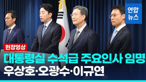 강 비서실장은 "우 정무수석은 소통과 상생에 대한 확고한 철학을 지니신 분"이라며 "오랜 의정 경험을 바탕으로 국정 전반에 대한 높은 이해와 합리성과 뛰어난 정무감각을 겸비한 인사"라고 소개했습니다.