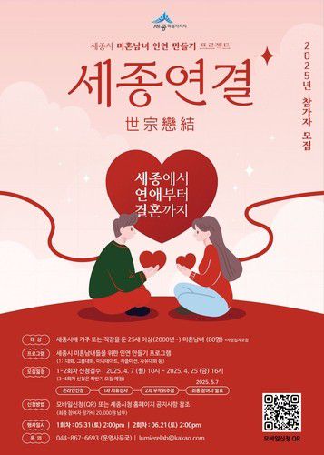 상반기 두 번째 만남행사는 오는 21일 진행되며, 자세한 사항은 세종연결 운영사무국(☎ 044-867-6693)으로 문의하면 된다.