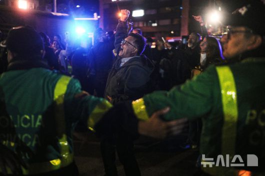 [보고타=AP/뉴시스] 콜롬비아 상원의원 미겔 우리베 투르바이가 7일(현지 시간) 보고타에서 열린 선거 유세 중 총격을 받아 중상을 입었다고 AP통신이 보도했다. 사진은 우리베 의원이 치료를 받고 있는 산타페 병원 앞에서 시민들이 시위를 벌이고 있는 모습. 2025.06.08. |
