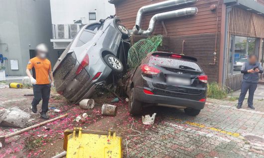 이어 전방 150m 가량 돌진한 SUV는 주차돼 있던 또 다른 SUV를 들이받은 뒤, 한 식당 건물 철재 펜스와 화장실 외벽을 잇따라 들이받은 뒤에야 멈춰 섰다.