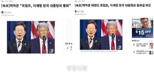 일부 커뮤니티에선 관련 보도가 정반대 내용으로 조작돼 유포되기도 했다. 실제 기사는 <[속보] 백악관 “트럼프, 이재명 한국 대통령과 통화>라는 제목이지만, 이를 <[속보] 백악관 대변인 트럼프, 이재명 한국 대통령과 통화설 부인>으로 바꿔 퍼뜨렸다. 이를 근거로 “미국을 두고 허위사실을 유포한 거냐”며 “일이 커지겠다”는 식의 음모가 이어졌다.