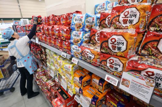 8일 서울의 한 대형마트에서 직원이 라면을 정리하고 있다. 뉴스1 |