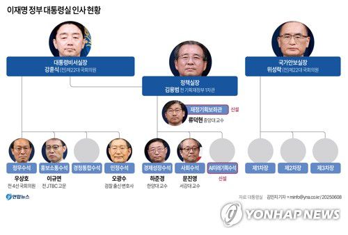 정책실장 산하 수석 중에도 AI미래기획 수석을 제외한 사회수석과 경제성장수석이 이미 지난 6일 발표된 바 있다.