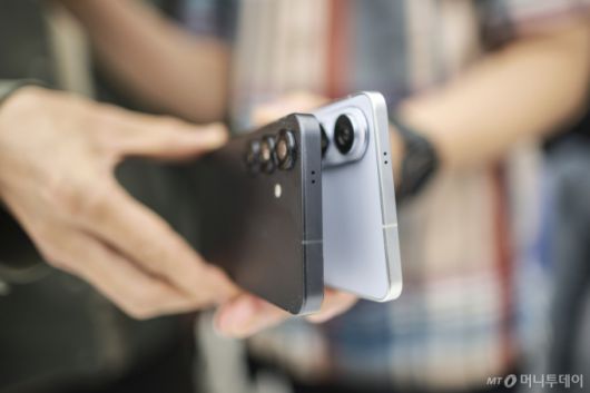 지난달 13일 서울 서초구 삼성 강남에서 열린 삼성 갤럭시 S25 엣지 미디어 브리핑에서 취재진이 삼성 갤럭시 S25 엣지(오른쪽)와 기존 스마트폰을 비교하고 있다./사진=뉴시스 |