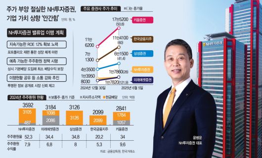 NH투자증권이 이재명 새 정부의 '코리아 디스카운트 해소' 기조에 발맞춰 업계 최고 수준의 주주환원 규모를 더욱 확대할 것으로 전망됐다. 정부 차원에서 주주 이익 강화책 마련을 독려하고 있는 만큼, 배당과 자사주 매입·소각 확대 등을 통해 주가 부양에 힘쓸 것으로 보인다.