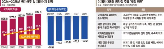 여당은 대통령의 핵심공약 이행에 5년간 210조원가량이 소요될 것으로 본다. 하지만 확장재정을 외칠수록 빚은 더 쌓인다는 점이다. 박근혜 정부 시절 30%였던 국내총생산(GDP) 대비 국가채무비율은 46%를 넘어섰다.
