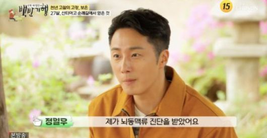 이날 정일우는 "20대 때 한창 일하던 중 뇌동맥류 진단을 받았다. 정말 눈앞이 깜깜해지더라. 그래서 내일을 모르겠다는 마음으로 산티아고 순례길에 올랐다"고 털어놨다.