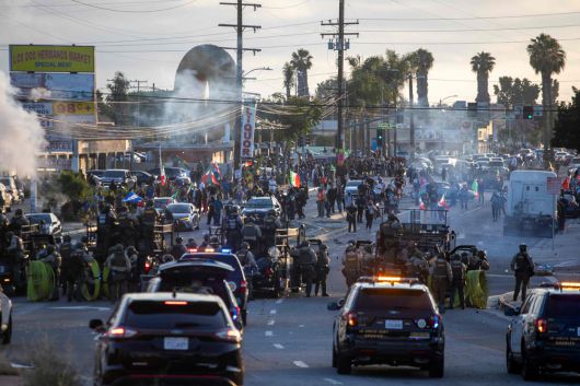ICE 요원들은 최루탄과 섬광탄 등을 사용해 진압에 나섰다. 시위대는 거리에서 차량과 쓰레기를 태우고 경찰 등을 향해 폭죽을 쏘며 시위를 이어가고 있다. 시위가 격화되자 LA 경찰은 불법 집회라고 선포한 뒤 시위대에게 해산을 명령했다.