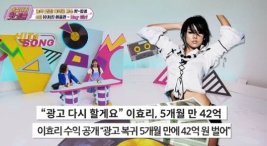 특히 눈길을 모은 건 이효리의 이야기였다. MC들은 이효리가 약 11년간 상업 광고 활동을 중단했다가 광고 복귀 선언을 한 뒤 단숨에 42억 원을 벌어들인 일화를 전했다.