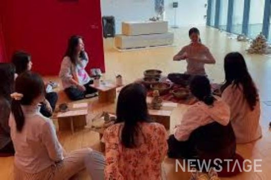 이번 프로그램은 아키바 리에와 그녀의 남편인 이재학 음악감독(A.Crane Healing & Meditation)의 싱잉볼 음계를 베이스로 만든 음악을 바탕으로 진행됐다. 자연돌을 주제로 참가자들과 함께 요가와 명상을 통해 마음을 나누는 시간을 가졌다.