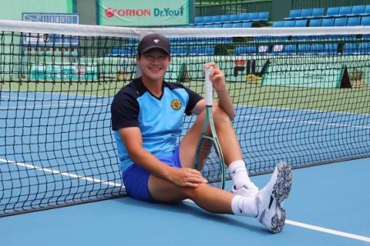 권순우가 2일 경남 창원에서 열린 '2025 국제테니스연맹(ITF) 오리온닥터유배 창원국제남자테니스 투어대회' 메인 코트에 앉아 활짝 웃고 있다. 오리온 테니스단 제공 |