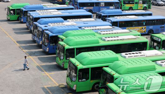 서울 송파구 장지공영차고지에 운행을 앞둔 시내버스가 정차돼있다. /뉴스1 ⓒ News1 박세연 기자 |