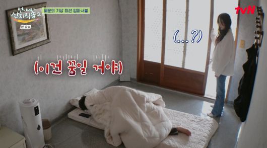 뒤이어 김혜윤은 이재욱이 자고 있는 방으로 이동해 "재욱아"라고 외쳤지만, 이재욱은 잠결에 귀신이라도 본 듯 놀라더니 아무 말 없이 등을 돌려 다시 이불을 덮고 잠을 청해 웃음을 자아냈다.