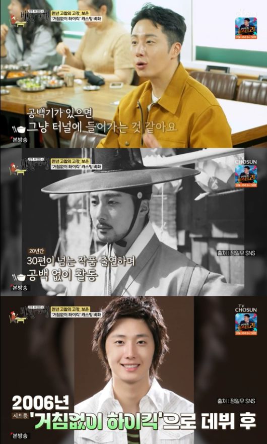 이날 정일우는 "내년 20주년을 앞두고 있다"면서 "내일도 촬영이 있다. 그런데 저는 일할 때 훨씬 행복한 것 같다. 이번에 2년 만에 드라마 복귀인데 저는 공백기가 있으면 터널 속에 들어간 느낌이다. 터널 속에 있다가 겨우 빛을 보고 밖에 나오는 과정인 것 같다"고 이야기했다.