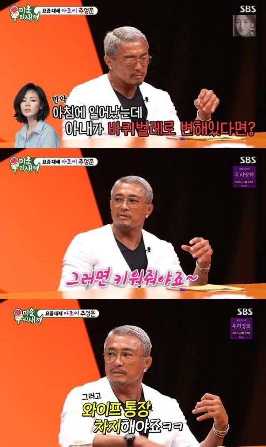 추성훈이 아내 야노 시호와 재산 공유를 하지 않는다고 밝힌 가운데, 아내가 바퀴벌레가 되면 통장을 차지하겠다고 말했다.