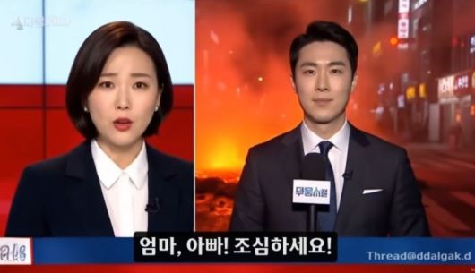 이 영상은 구글의 AI 영상 생성 모델 ‘Veo(비오3)’를 활용해 제작된 것으로, 실제 아나운서 뉴스처럼 구현된 영상미와 자연스러운 음성 합성이 화제가 됐다.