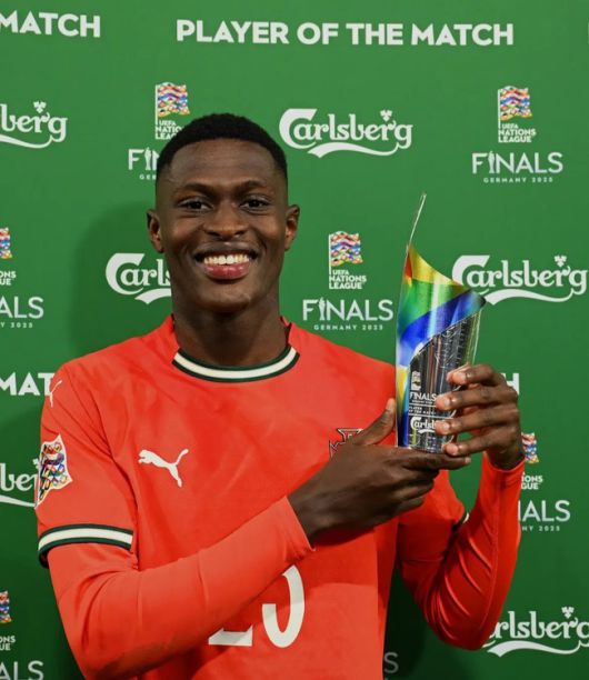 포르투갈은 9일 오전 4시(한국시간) 독일 뮌헨에 위치한 알리안츠 아레나에서 2024-25시즌 유럽축구연맹(UEFA) 네이션스리그(UNL) 결승전에서 스페인과 2-2로 비겼는데 승부차기에서 승리를 했다. 포르투갈은 2018-19시즌에 이어 통산 2번째 우승에 성공했다.