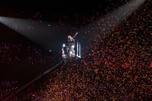 무엇보다 마카오 공연에서 G-DRAGON은 이번 투어 최초로 ‘위버맨쉬 암크레인’을 타고 날아올라 시선을 단숨에 사로잡았다. G-DRAGON이 위버맨쉬 로고와 데이지 꽃으로 장식된 암크레인을 타고 'Today (Feat. 김종완 of Nell)'를 부르며 객석 가까이 다가서자, 관객들은 일제히 폭발적인 환호성을 쏟아냈다.