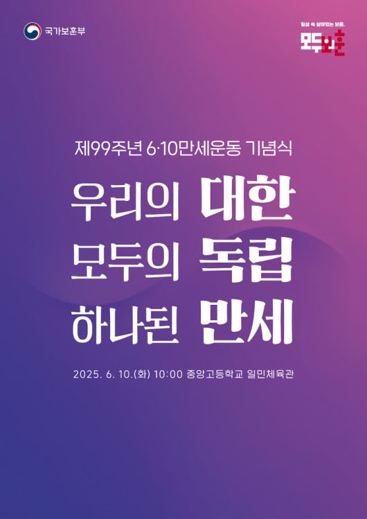 [서울=뉴시스] 옥승욱 기자 = 국가보훈부는 10일 오전 서울 종로 중앙고등학교 체육관에서 ‘제99주년 6·10만세운동 기념식’을 거행한다고 9일 밝혔다.