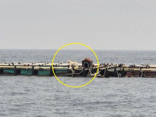 제주 바다 위 양식장에 묶여 있는 개 발견