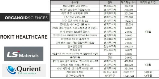 지난달 상장한 오가노이드사이언스와 로킷헬스케어의 벤처투자자 지분이 상장 1개월 만에 보호예수에서 풀려 매물로 출회될 전망이다. LS머트리얼즈는 2023년 상장 직전 재무적투자자를 대상으로 발행했던 신주가 이번 주에 매물로 출회된다. |