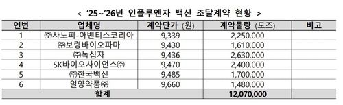 2025∼2026절기 인플루엔자 백신 조달계약 현황 |