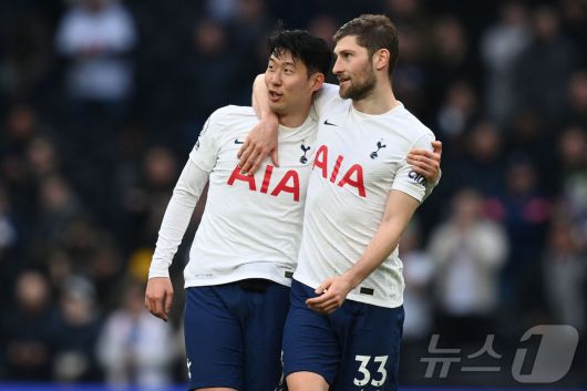 토트넘 홋스퍼에서 2026년까지 함께하는 손흥민과 벤 데이비스. / ⓒ AFP=뉴스1 |