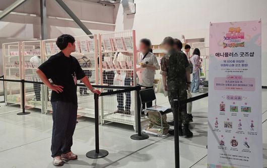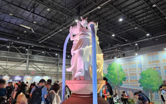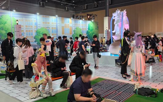 ▲ 포토존에 자리잡고 팬들과 기념 사진을 찍는 코스어들의 모습