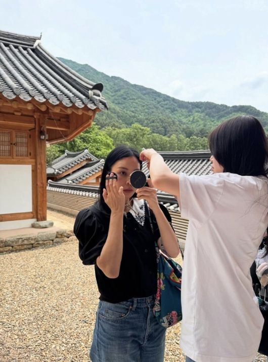 함께 공개된 사진 속 고소영은 한옥이 고즈넉이 자리한 마당 위에서 특유의 단정한 분위기를 풍기며 앉아있다.