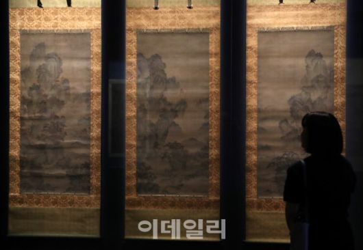 [이데일리 김태형 기자] 9일 서울 국립중앙박물관에서 열린 ‘새 나라 새 미술 : 조선 전기 미술 대전’ 특별전에서 관계자들이 전시물을 살펴보고 있다. 국립중앙박물관은 용산 개관 20주년을 맞아 국보 16건, 보물 63건 등 15~16세기 조선의 도자, 서화, 불교미술 등 691건의 작품을 기획 전시한다.