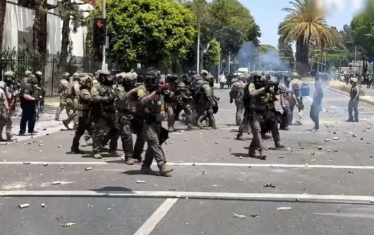 대통령은 주저하지 않았다. 캘리포니아 주지사 개빈 뉴섬의 동의를 구하지 않았다. 미국 연방법전 제10편 제12406조를 방패로 삼아 캘리포니아 주방위군 2,000명을 로스앤젤레스에 투입하라는 행정명령에 서명했다. 실제로는 300명이 먼저 배치되었다. 소총과 곤봉으로 무장한 채로.