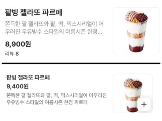 여름을 맞아 저가 커피 프랜차이즈에서 선보인 1인용 컵빙수, '팥빙 젤라또 파르페'가 폭발적인 인기를 끌고 있는 가운데, 매장별 배달 가격이 제각각 달라 ‘컵빙수 시가 논란’이 일고 있습니다.