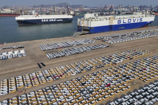 [옌타이(중 산둥성)=AP/뉴시스]중국 산둥(山東)성 옌타이(烟台)항에 지난 2일 수출을 위한 승용차와 트럭들이 선적을 기다리고 있다. 도널드 트럼프 미 대통령 당선인이 취임 후 부과를 위협한 더 높은 관세가 시행되기 전 공장들이 주문을 채우려 서두른 데 힘입어 12월 중국 수출이 예상보다 빠른 속도로 증가한 것으로 13일 중국 해관총서에서 나타났다. 2025.01.13. |