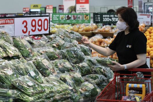 지난달 22일 서울 시내 한 대형마트에서 방문객이 장을 보고 있다. 뉴시스 |