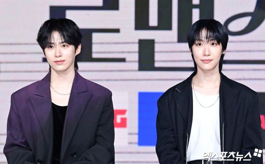 (엑스포츠뉴스 박지영 기자) 9일 오후 서울 상암동 쇼킹케이팝스튜디오에서 OTT 드라마 '풋풋한 로맨스' 제작발표회가 열렸다. 이날 제작발표회에 참석한 원어스 시온과 원위 동명이 인사하고 있다.박지영 기자 jypark@xportsnews.com