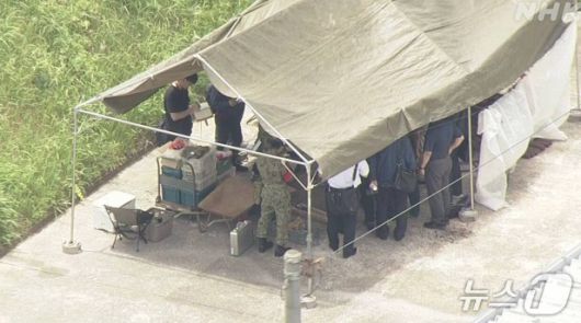 일본 오키나와현 가데나 기지 인근에 설치된 텐트. <출처=NHK 방송 캡처> |