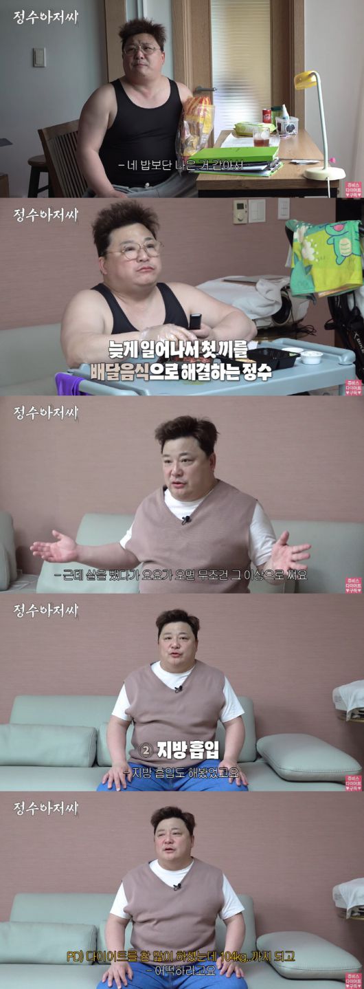 윤정수는 살을 빼기 위해 다이어트 주사를 맞은 적이 있다면서 "배에다 주사를 맞았는데 맞을 당시에는 효과가 있었는데 바로 요요가 왔다. 근데 살 뺐다가 요요가 오면 무조건 그 이상으로 찐다. 그건 맞는 거 같다"고 털어놨다. 이어 "지방 흡입도 해 봤는데 배가 너무 딱딱해져서 딱딱해진 게 장기를 눌러서 숨 쉴 때 힘든 것도 있고 빼는 것도 잘 안 빠진다"고 고백했다.