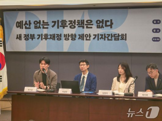 이상민 나라살림연구소 수석연구원은 9일 서울 중구 한국프레스센터에서 열린 '새 정부 기후재정 방향 제안 기자간담회'에서 이같이 밝혔다. 이날 행사는 녹색에너지전략연구소와 녹색전환연구소, 2020재단이 함께 주최했다.