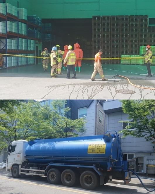 현재 사고 현장에서는 오염수 제거와 함께 우수관 및 하천으로의 유입을 차단하기 위한 오염 방지 조치를 진행하고 있다.