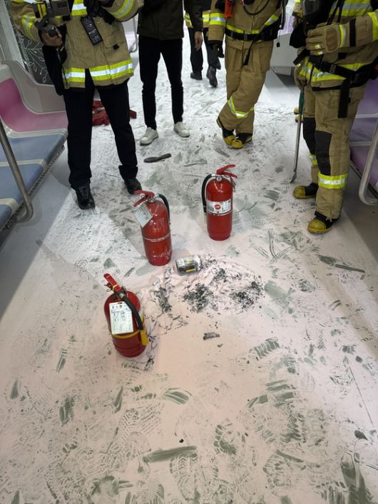 지난달 31일 서울지하철 5호선 열차 안에서 방화로 인해 승객들이 지하 터널을 통해 대피하는 사건이 발생했다. 사진은 당시 서울지하철 5호선 객차 내부의 모습. 〈사진=영등포소방서〉 |