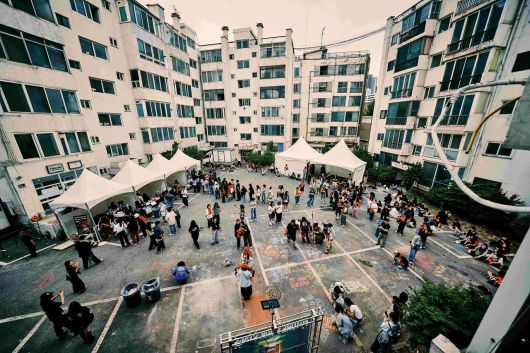 관객들은 분필로 아파트 곳곳에 자유롭게 낙서를 남기고, 록 페스티벌을 연상시키는 깃발 응원과 함께 공연을 즐겼다. 덕분에 콘서트 현장은 공연 시작 전부터 한여름 페스티벌을 방불케 하는 뜨거운 분위기로 가득 찼다.