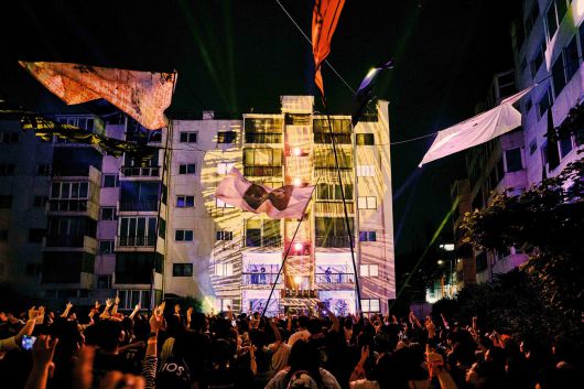 이번 공연은 공간 자체의 상징성과 실험성에 주목, "여름과 함께 사라질 그곳에서…"라는 슬로건 아래 시공간을 초월한 몰입감을 연출했다. 특히 아파트라는 일상적 풍경과 공연의 강렬한 사운드가 빚어내는 묘한 조화가 현장을 더욱 특별하게 만들었다. 여기에 베란다 외벽 전체를 활용한 미디어 파사드를 연상시키는 조명 연출이 더해져, 철거를 앞둔 아파트가 빛과 사운드로 새롭게 재해석되는 장면을 완성했다.