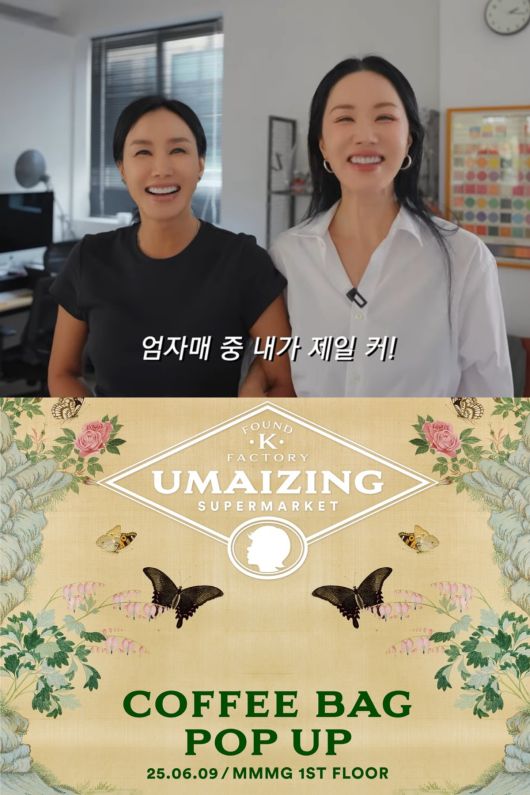 배우 겸 가수 엄정화(오른쪽)가 새로운 도전에 나섰다. Umaizing 엄정화 TV 채널을 통해 엄메이징 슈퍼마켓 팝업 소식을 알려 큰 화제를 모았다. 사진은 엄정화의 미모와 무해한 웃음이 똑닮은 여동생 엄정선 씨와 함께 한 모습. |