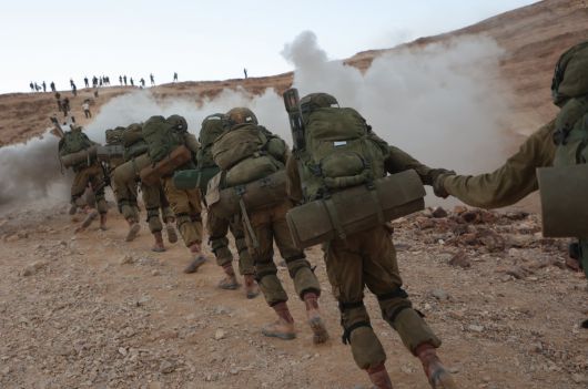 지난달 29일(현지 시간) 이스라엘 사해 인근 마사다에서 이스라엘군(IDF) 신병들이 40㎞, 10시간 행군을 하고 있다. 천혜의 요새 마사다는 서기 73년 로마군의 무력에 싸우던 이스라엘군이 패색이 짙어지자, 노예가 되길 거부하며 전원 자결한 곳으로 유대인의 민족정신을 상징하는 성지이다. 마사다=신화 뉴시스 |